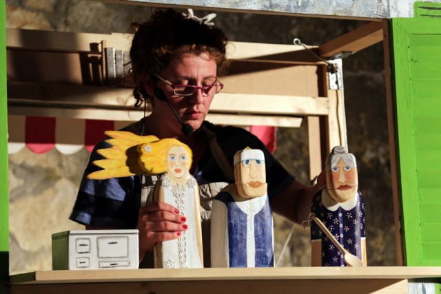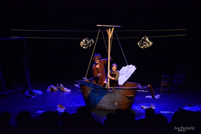 Osim izložbe posvećene stotoj godišnjici slovenskog lutkarstva, iz susjedne nam republike dolaze čak dvije predstave. Mali daždevnjak prelazi cestu je kolaž lutaka i poezije slovenskog pjesnika Srečka Kosovela koji potiče gledatelja da uživa u znatiželji, da se smekša, razveseli i ljulja uz jednostavne ritmove njegovih stihova. U predstavi se uz lutke animira sve: prostor, materijal, predmet, svjetlo, zvuk, riječi, ljudi.