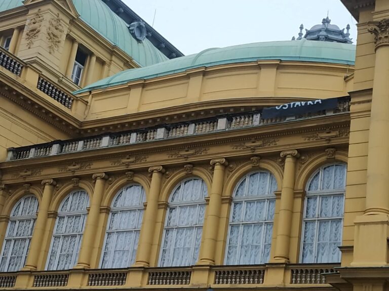 Na zagrebačkom HNK danas je osvanuo transparent s porukom ministrici kulture: "Ministrice, izgubili smo igrača na terenu. Do kad mislite štiti izbornika?"